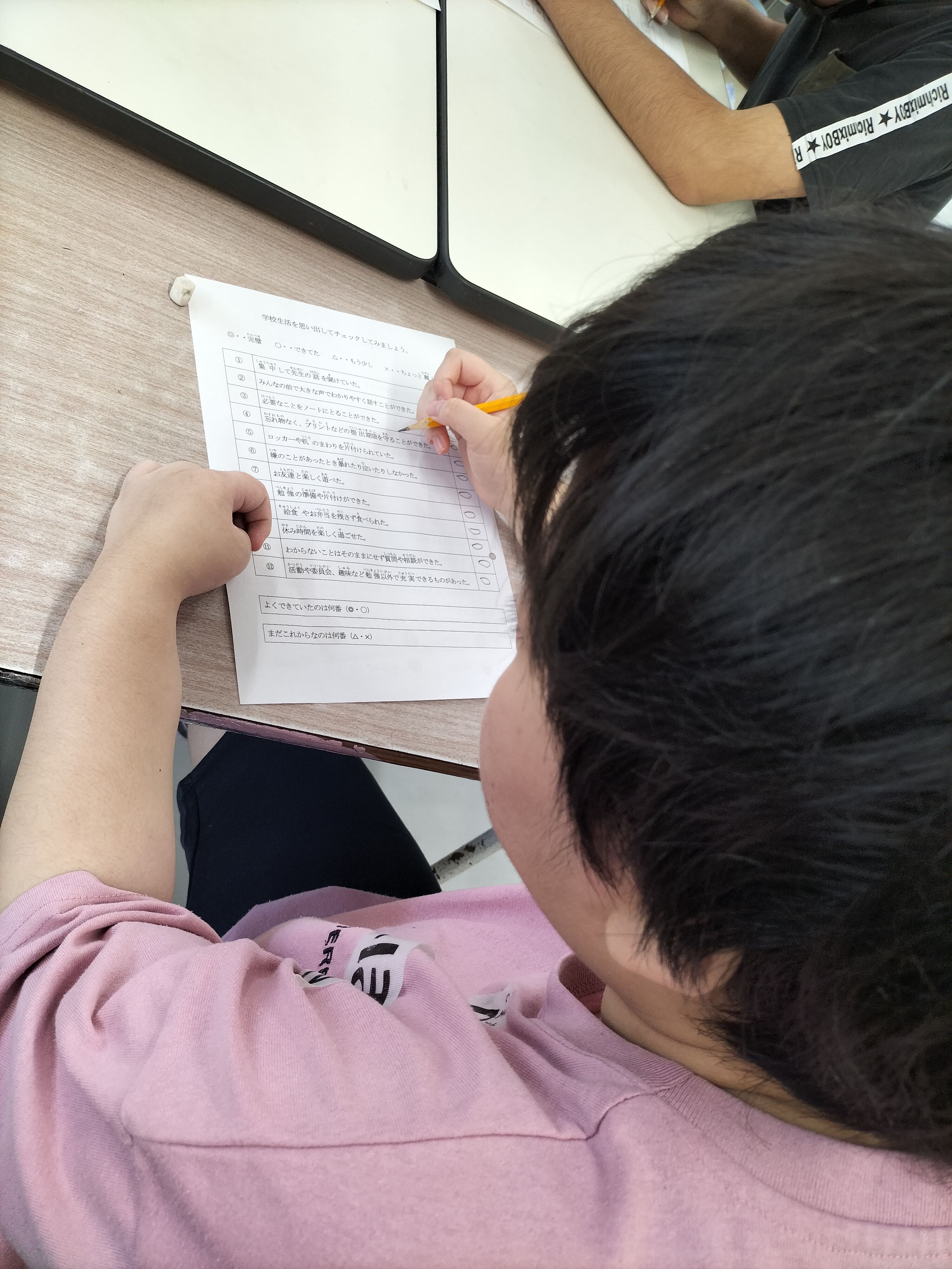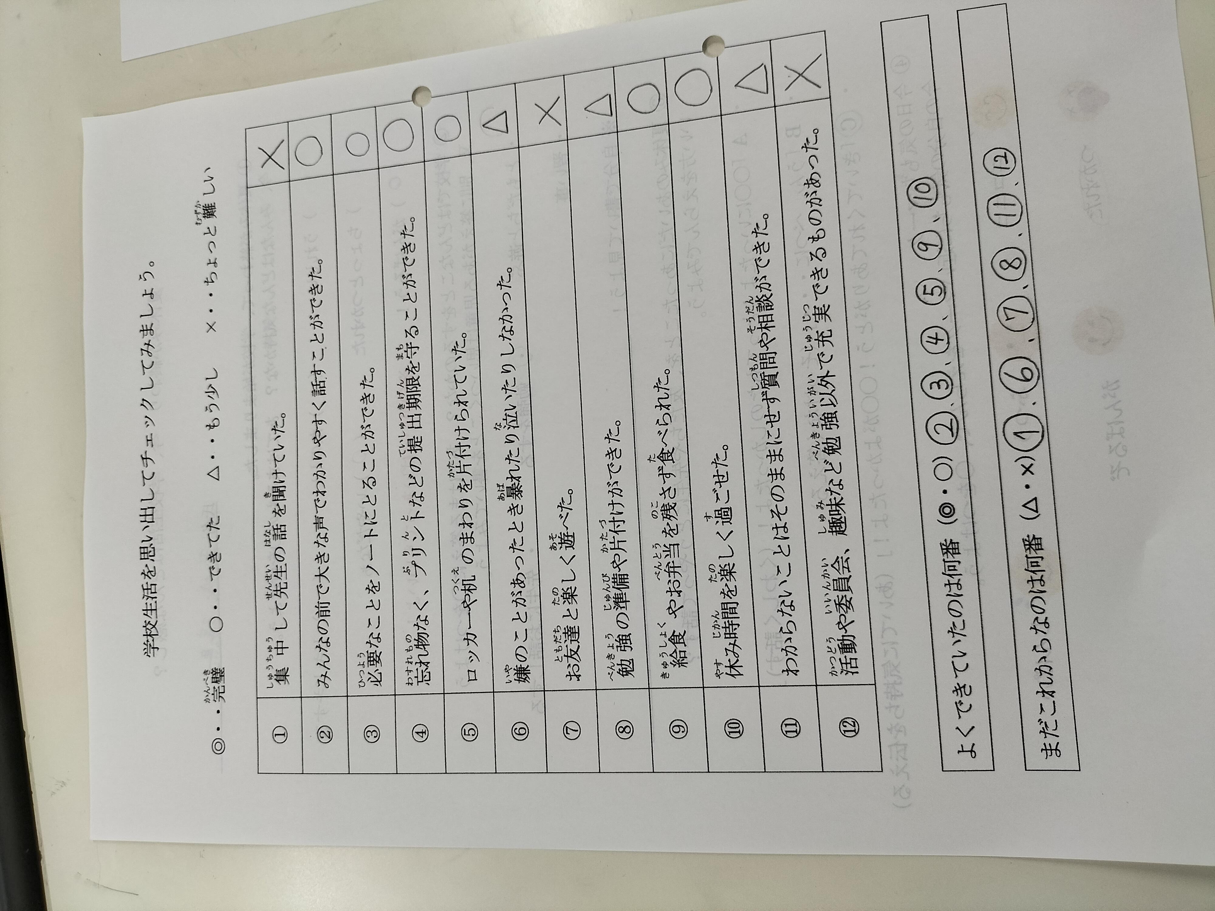 学校生活の振り返りチェックシートも記入しています。