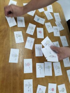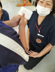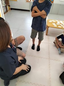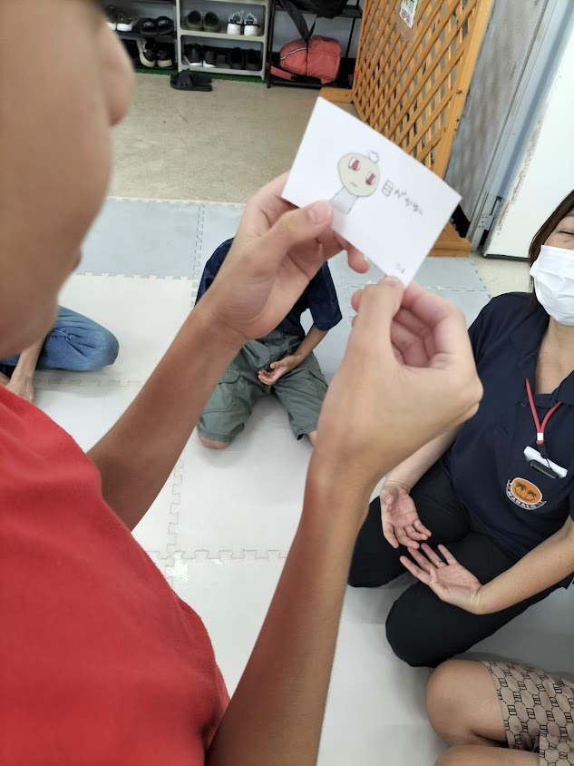 お手本を見た後は体調に関する様々な絵カードを用意します。