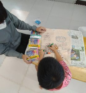 大好きなトーマスの絵とはカボチャの絵にマジックで色を塗り完成。