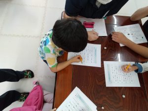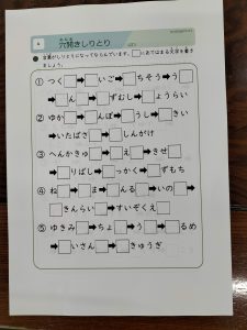 各グループ、穴埋めしりとり問題を集中して解く事が出来ていました。