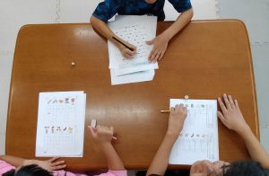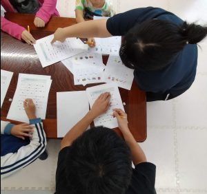 各グループ(大テーブル、中テーブル、小テーブル、学習机)にわかれて行います。