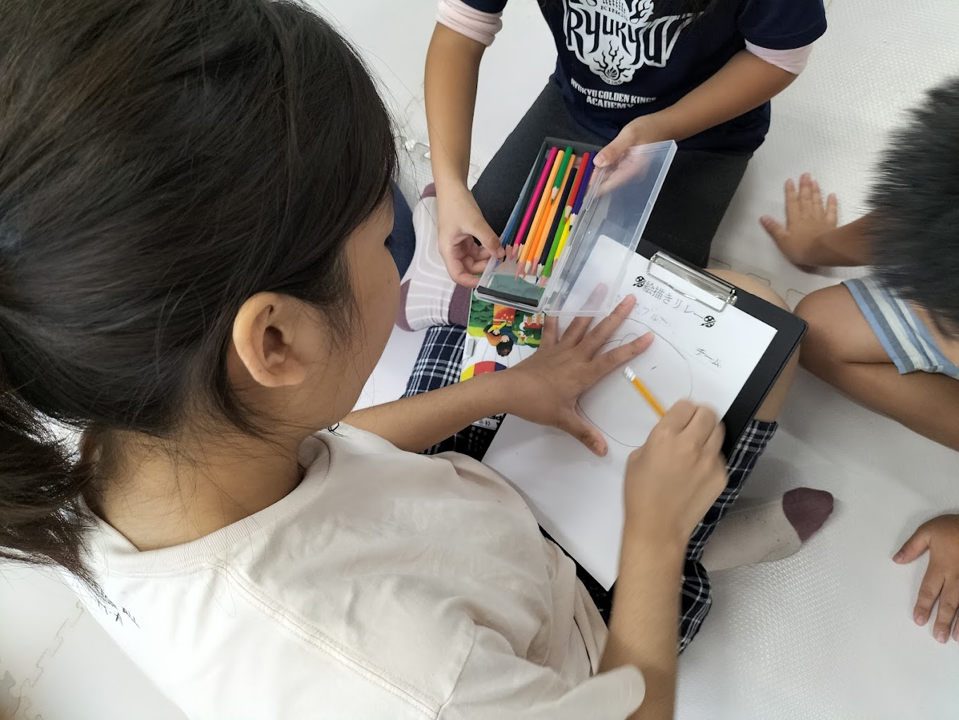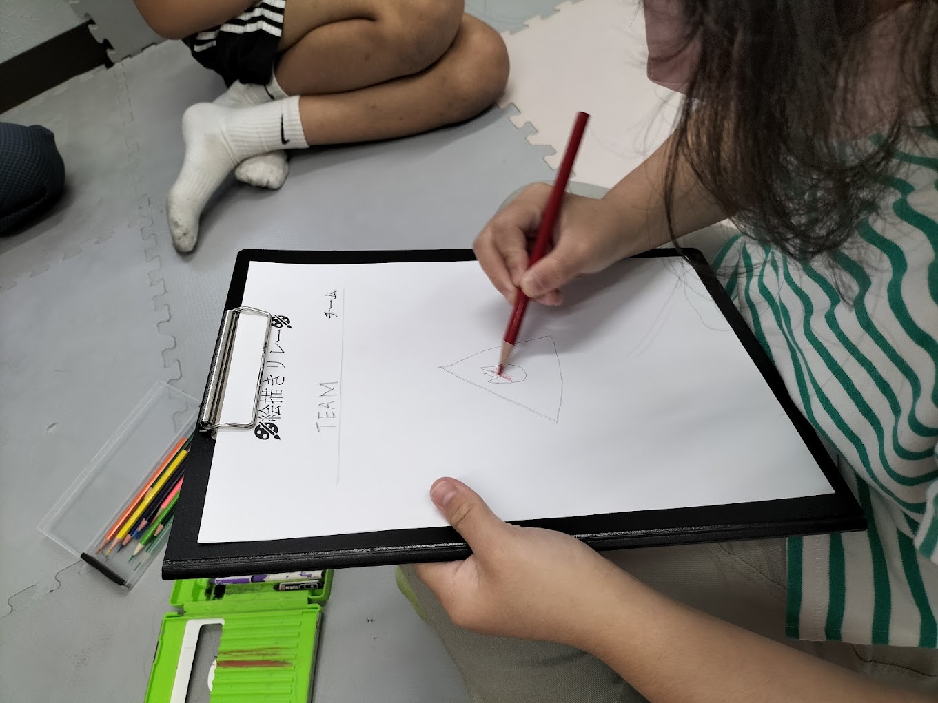 自分のチームに戻り用意された白紙にイラストの一部を描きます。