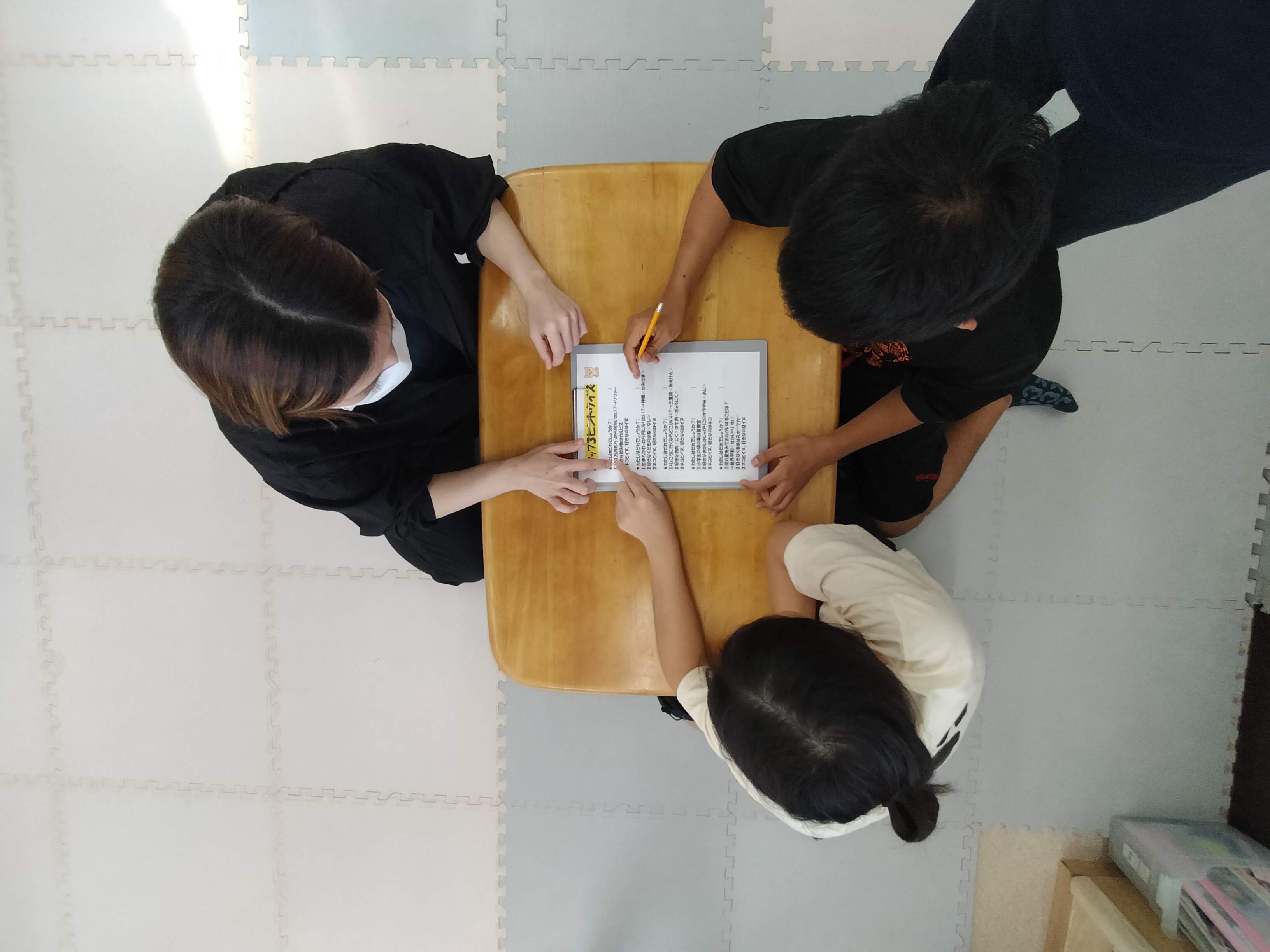 3グループに分かれお友達と一緒に問題を読んで答えを書いて下さい。