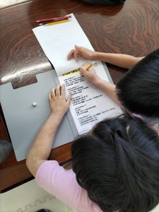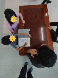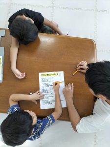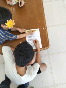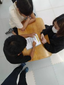各グループともお友達とプリント問題内容を読んで記載する事が出来ています。