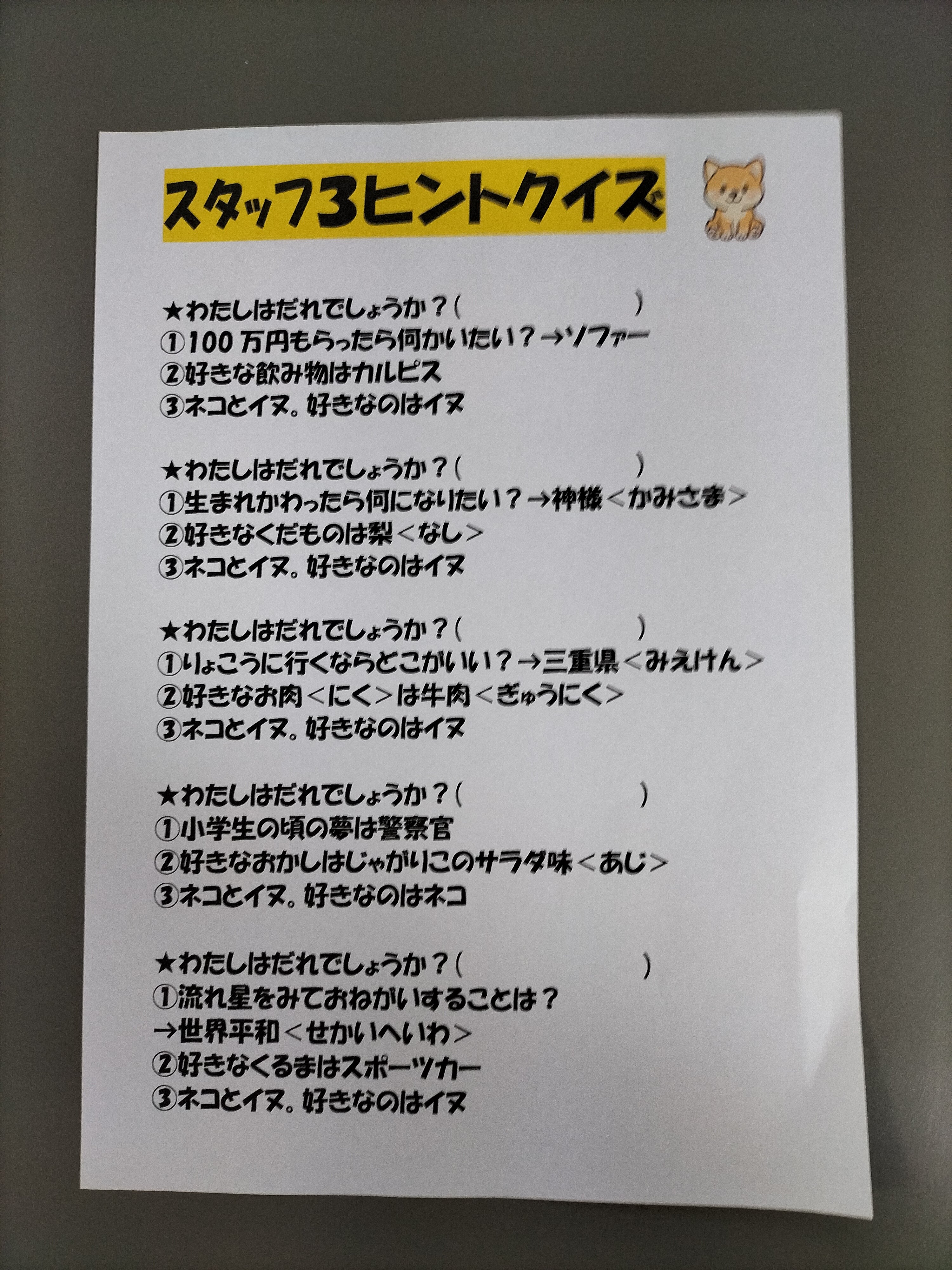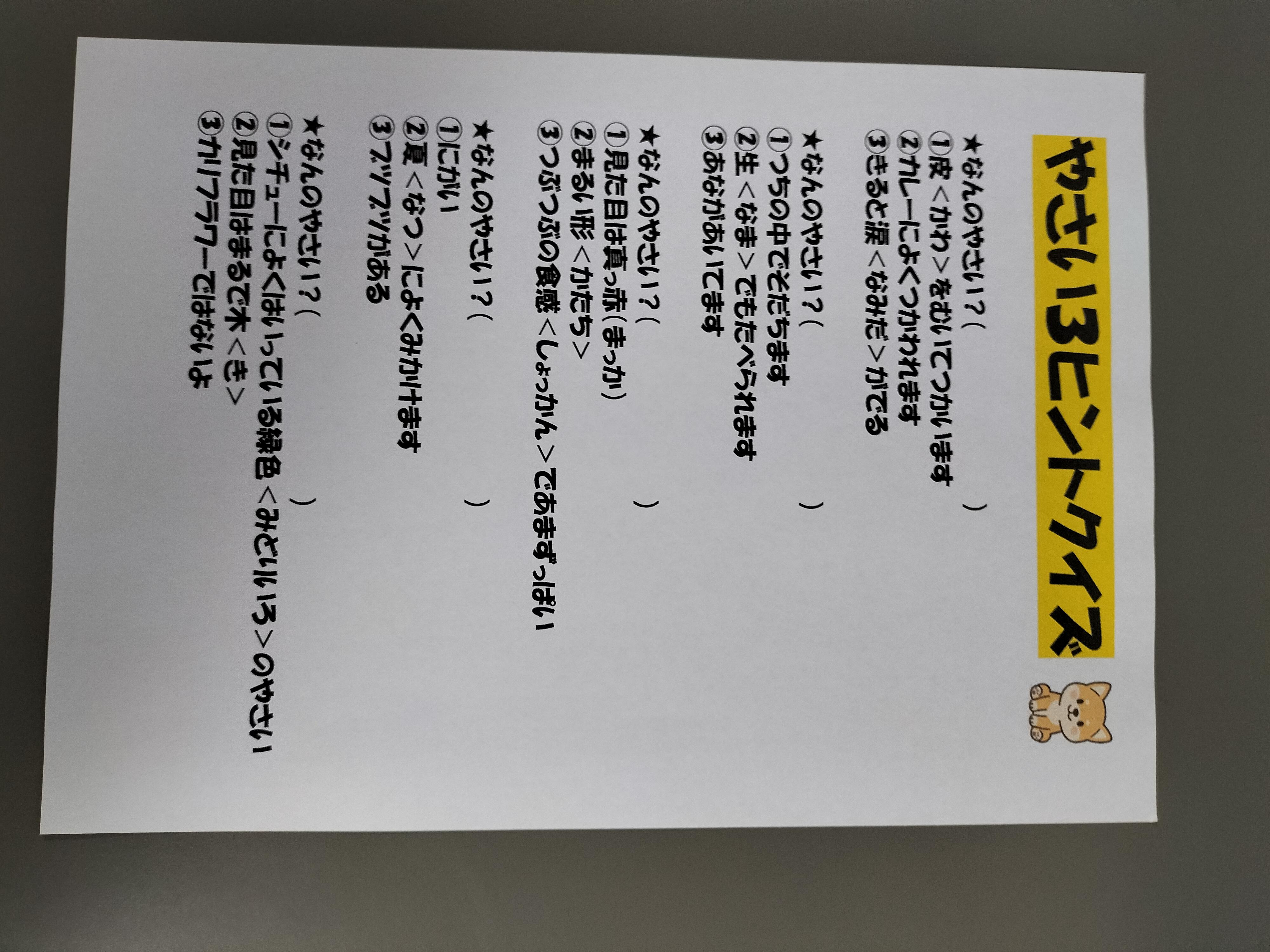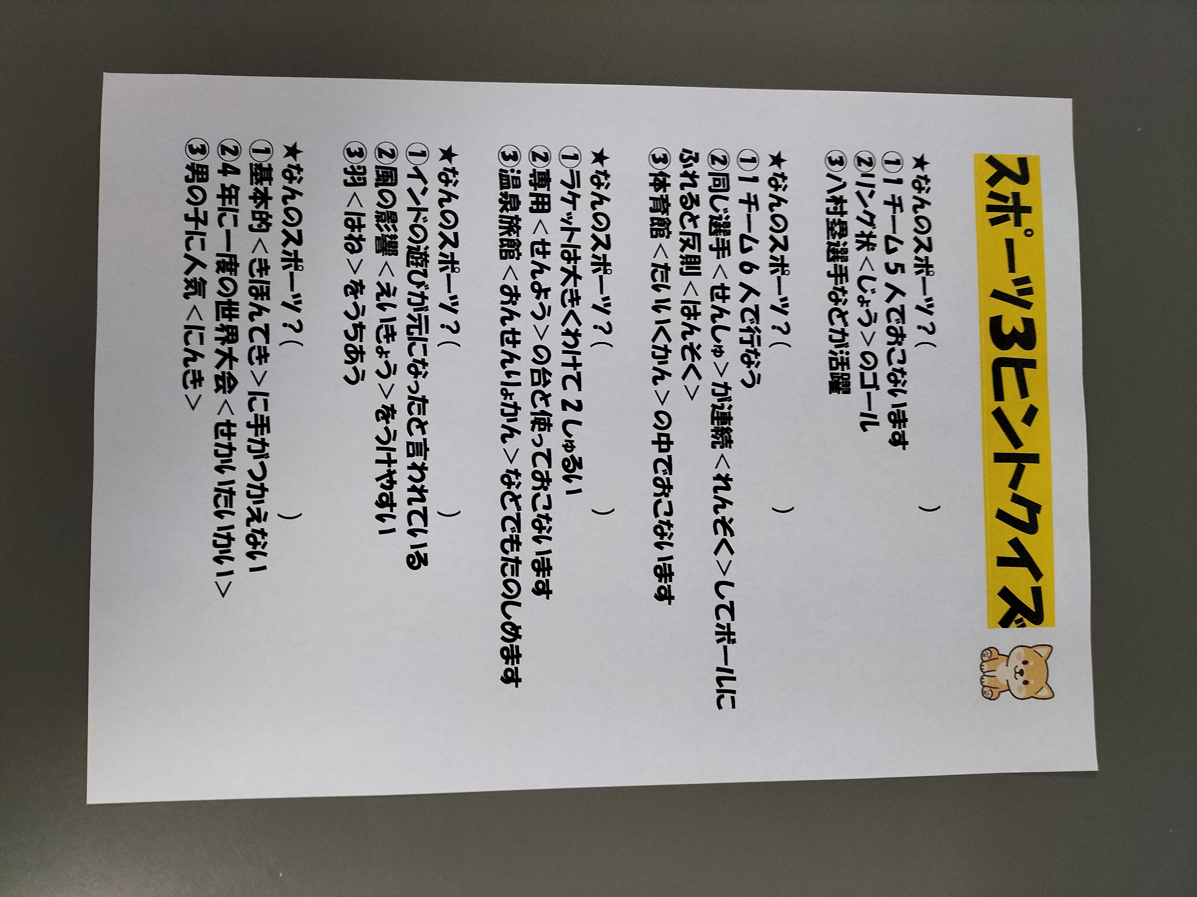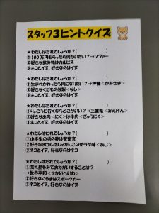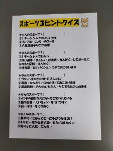 本日の課題活動は、3ヒントクイズです。