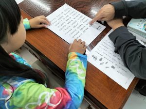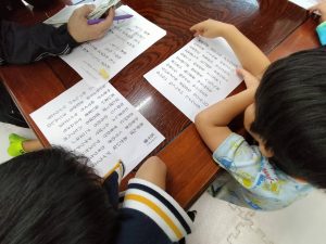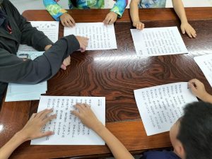 読み方を覚えたら、今度はみんなで息を合わせて読みます。
