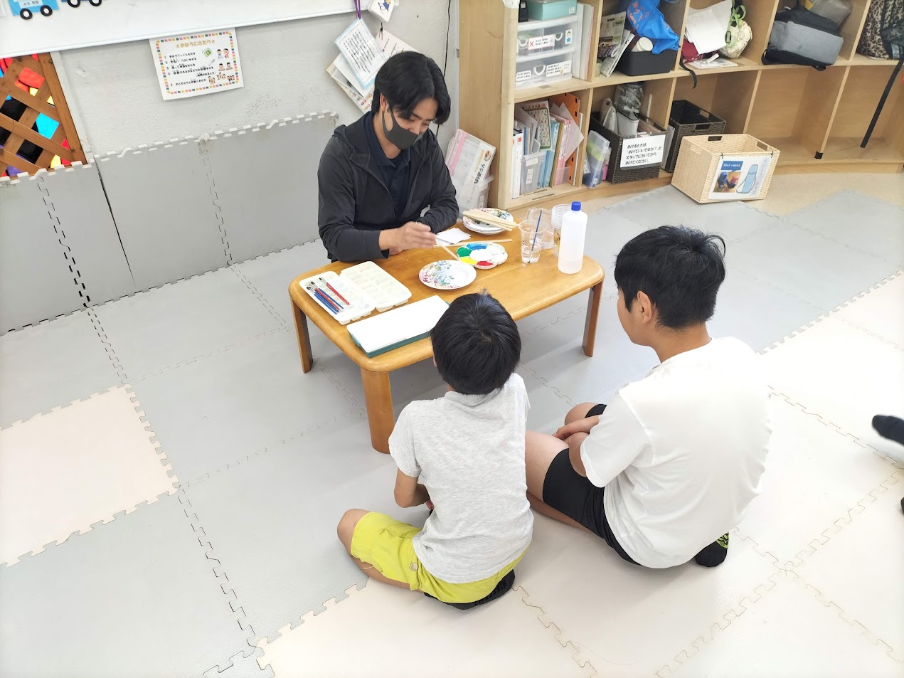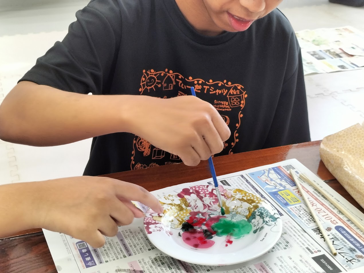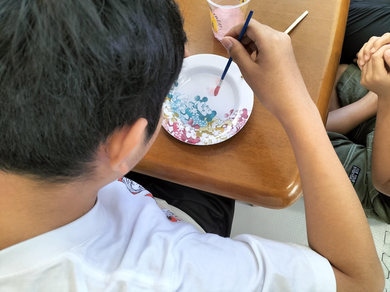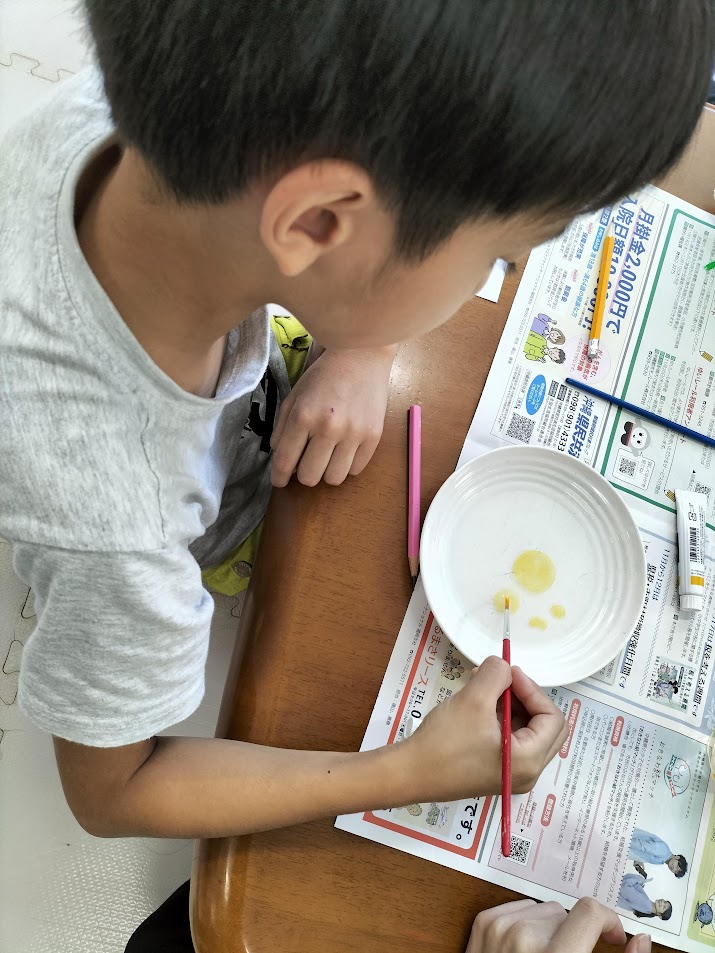 何色か使ったり、すこし絵の具を動かして模様を変化させたりしています!