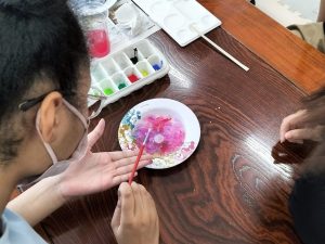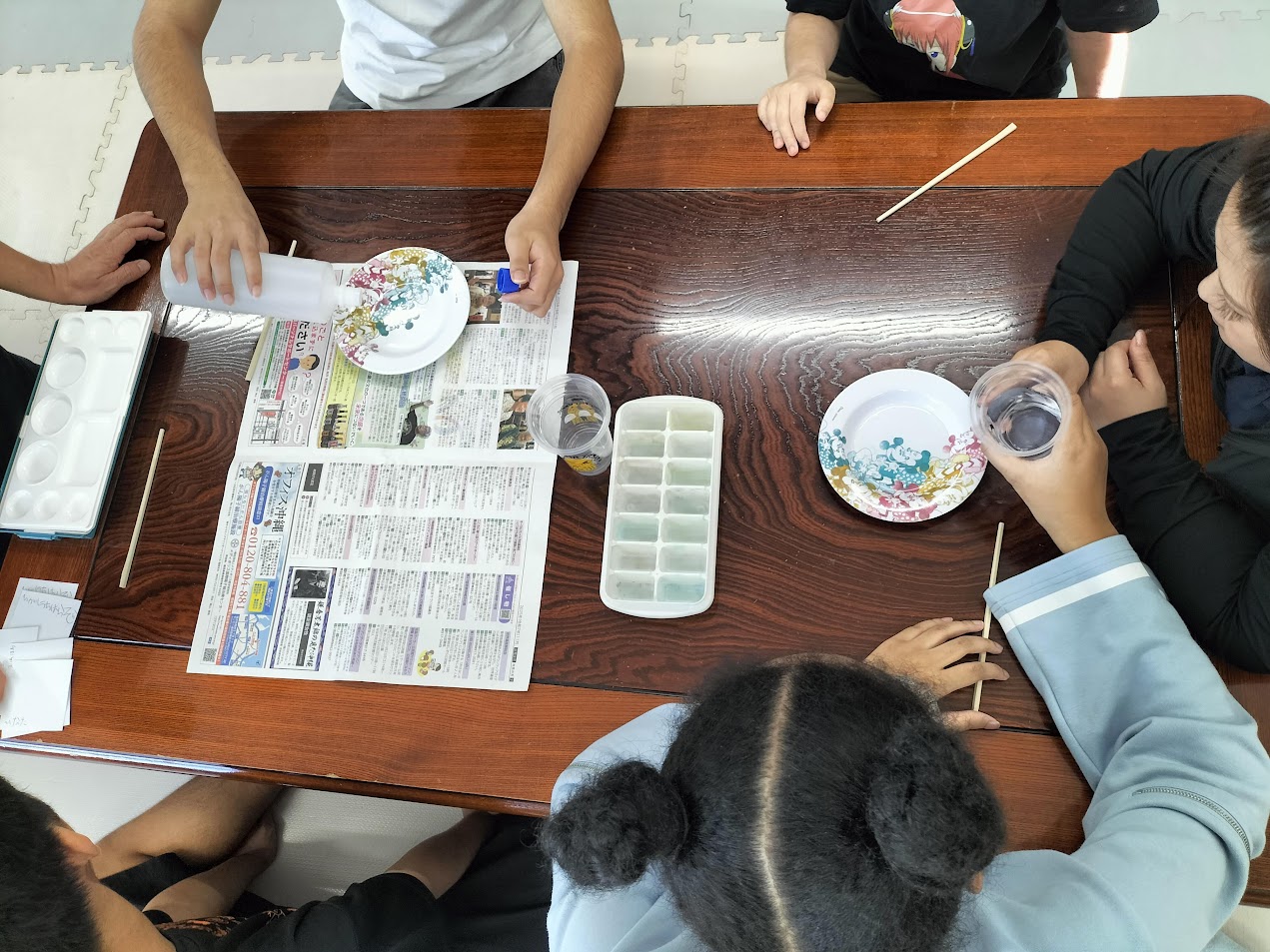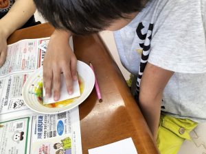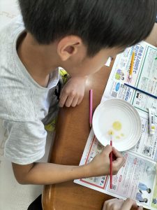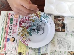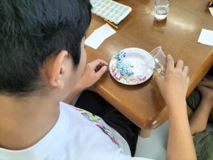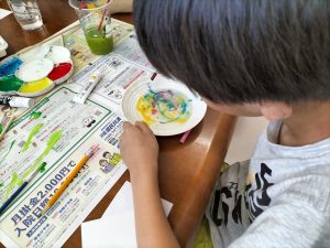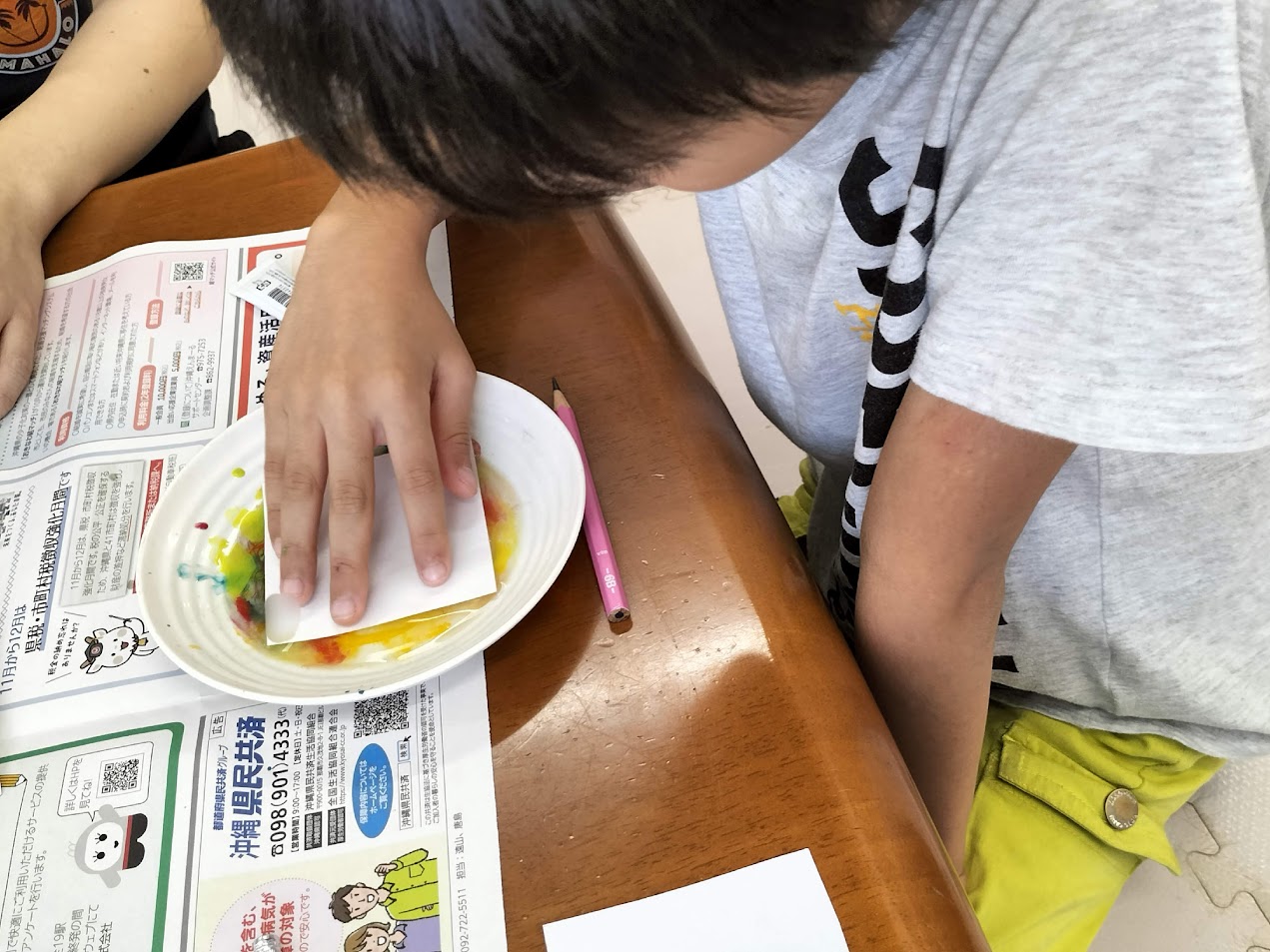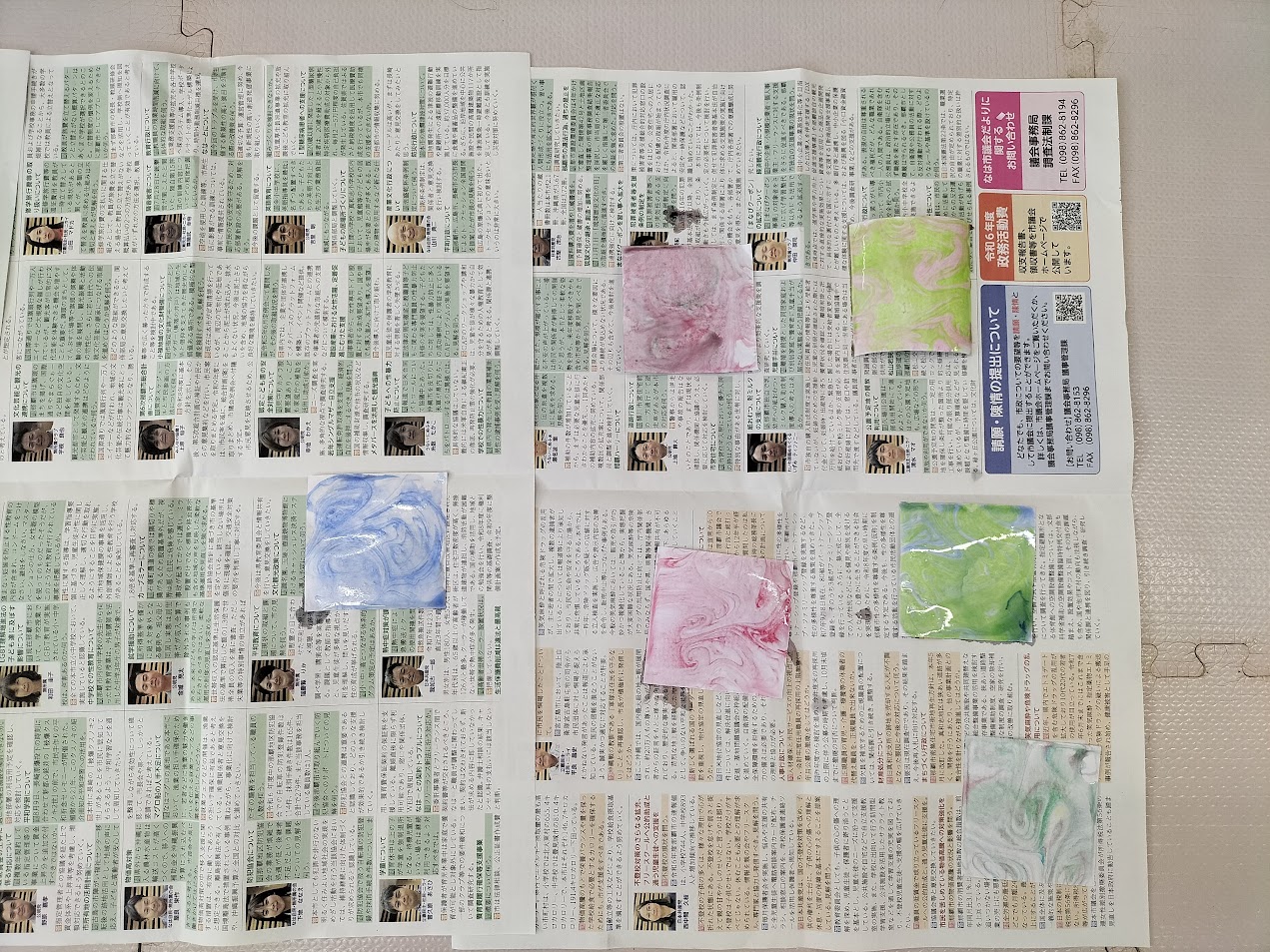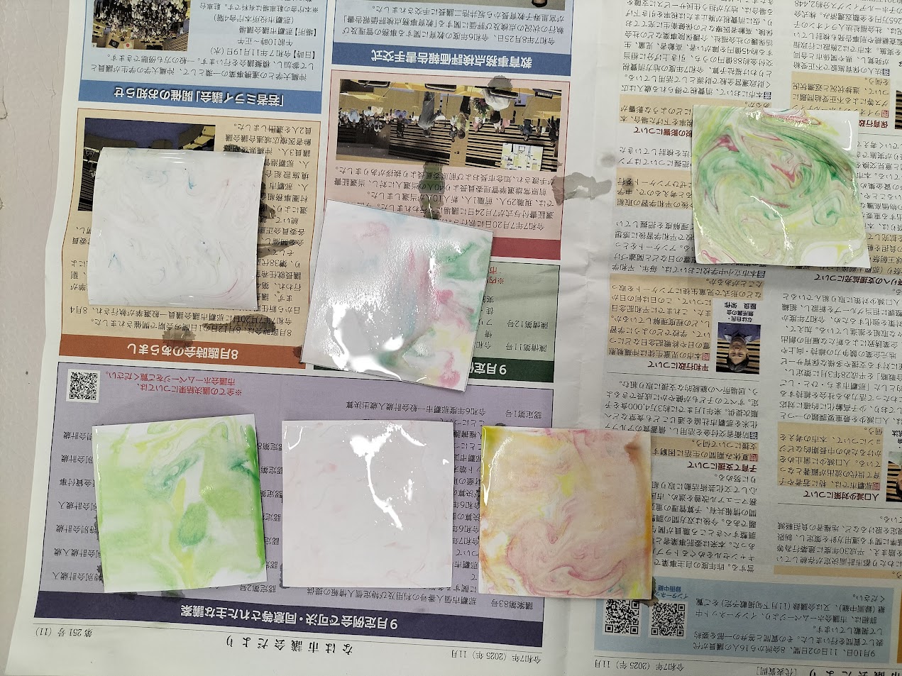 マーブリングとは、水に絵の具を滴らし、できた模様を紙に写し取る技法のことです!