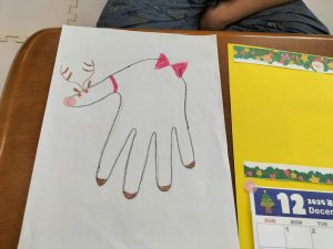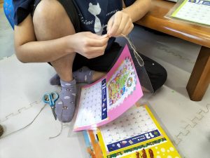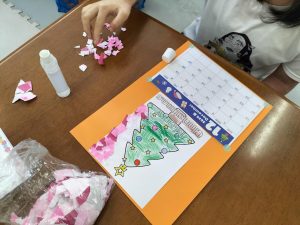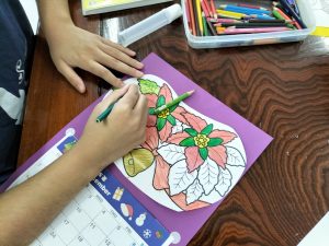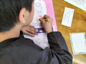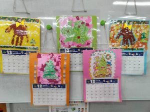塗り絵チームは、塗り絵が貼られているカレンダーから