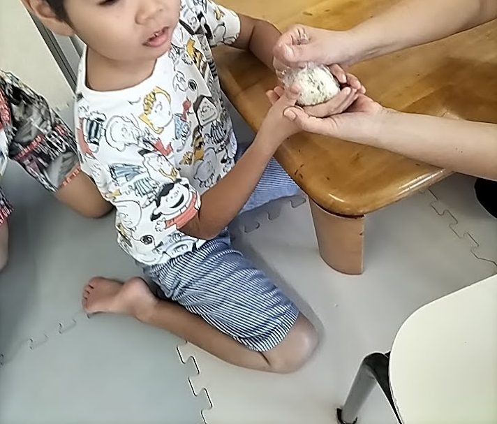 おにぎりは優しく愛を込めてにぎにぎ(笑)