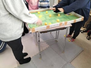 優しく手で転がします、やってみると結構白熱するゲームになっています。