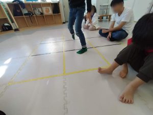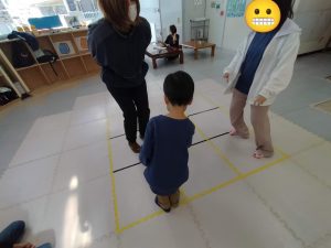 鬼は真ん中、逃げる人は好きなマスに立ったら