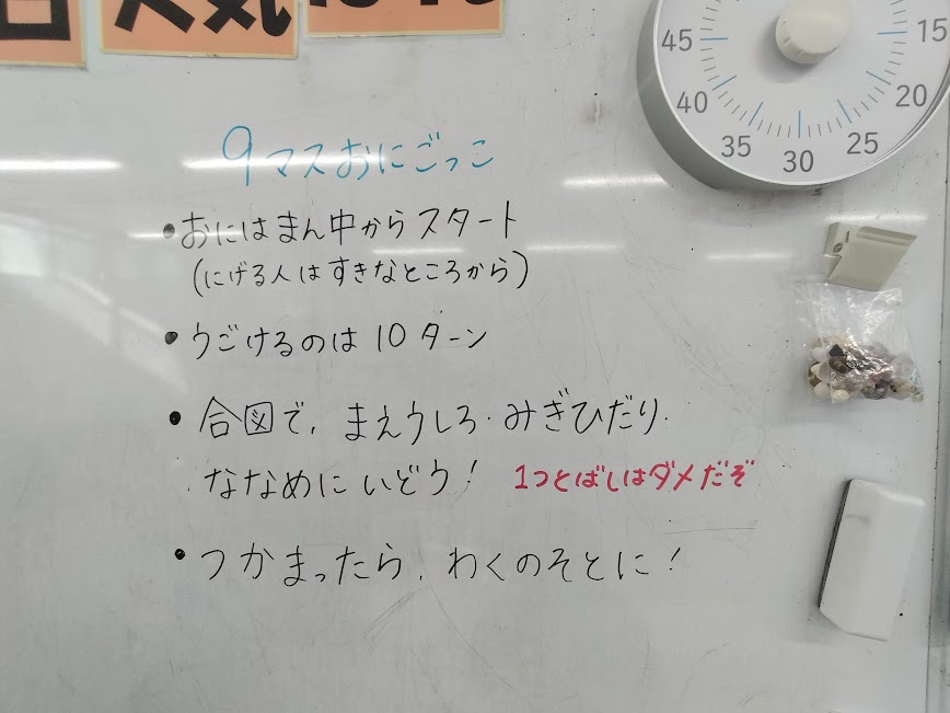 鬼は真ん中、逃げる人は好きなマスに立ったら
