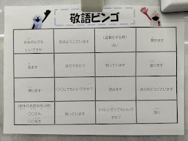 プリントに丁寧語が書かれたビンゴカードを配布し、