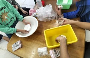 色をつけオシャレなスライムを完成させる児童も。