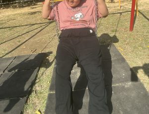 児童は二人ともブランコに夢中です。ニコニコで楽しそうに乗っていました😊