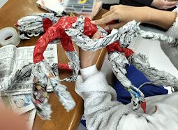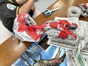 こちらは新聞紙を使って大好きな恐竜を作っていきます。