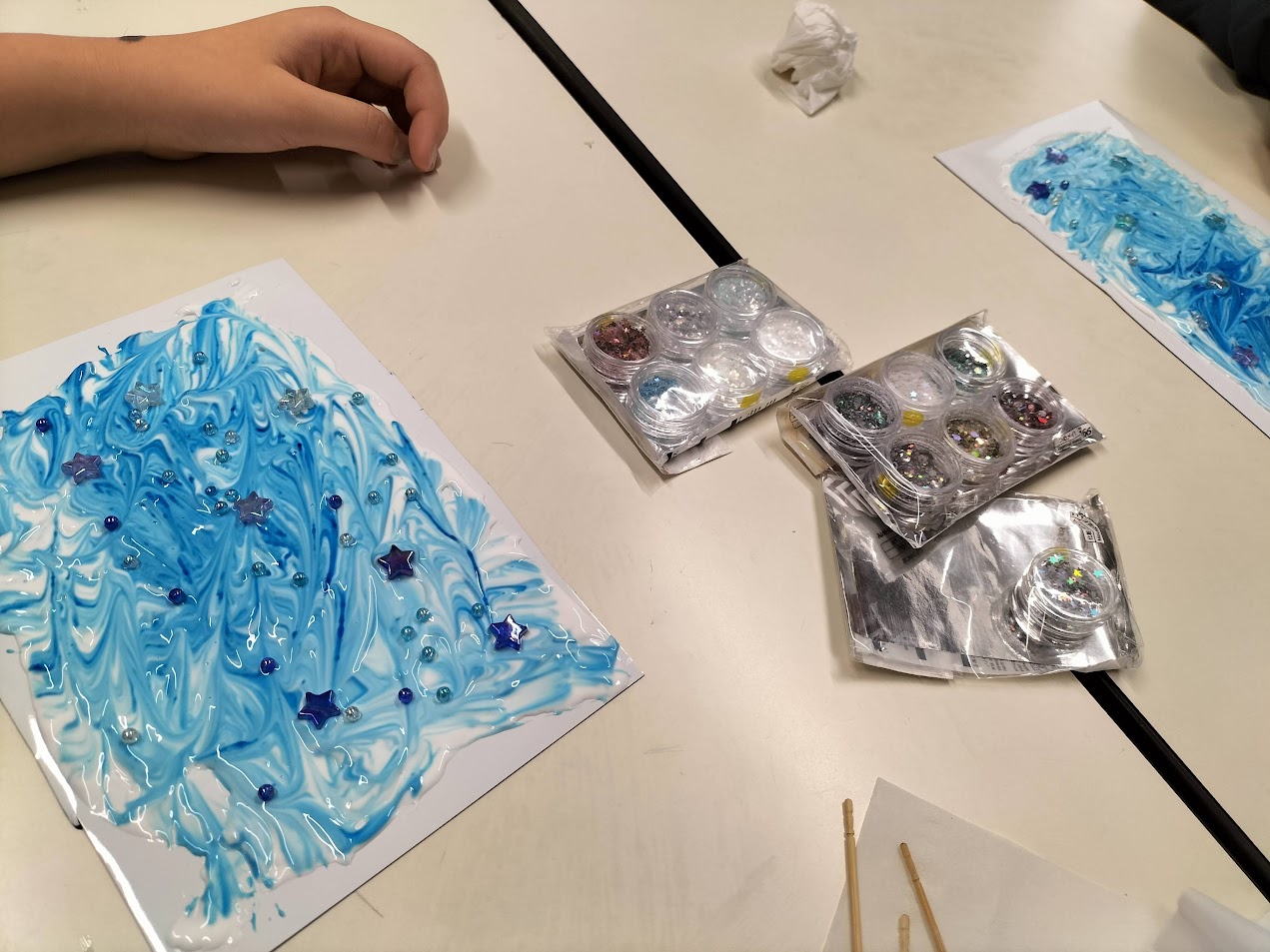 マグネットシートの上にボンドをスプーンで均等に広げ