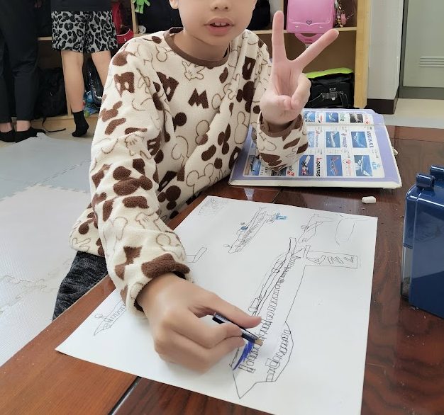 大好きな新幹線のイラストを図鑑を見ながら描いたり