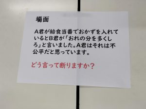 次はグループに分かれて、断る必要がある場面にどう伝えるか考えます。