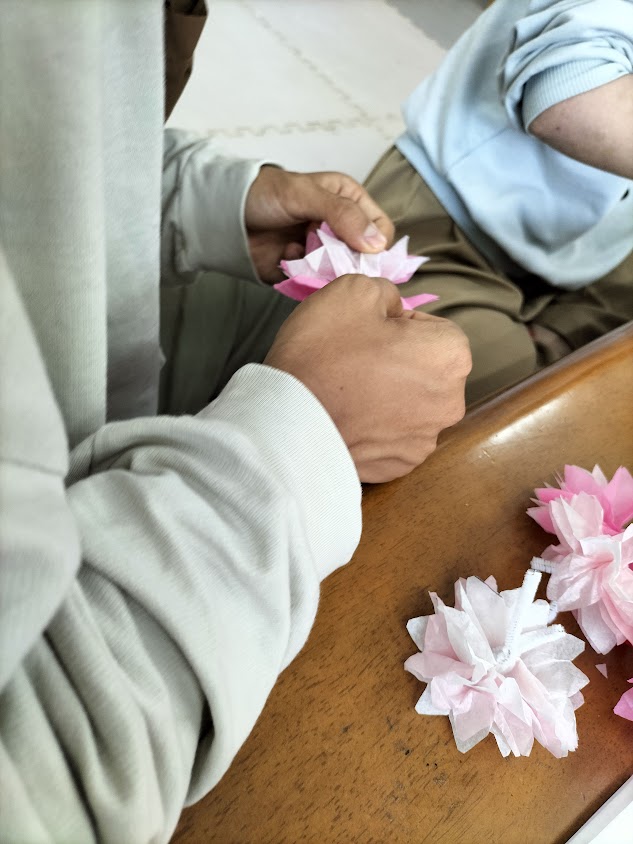 上の画像のように、はながみを使って、お花を広げて