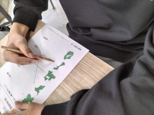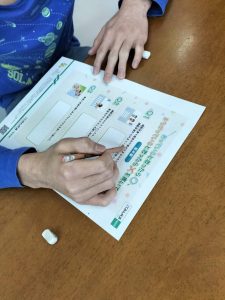 プリント一枚解けたらスタッフに丸付けをしてもらい