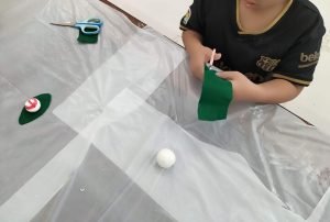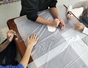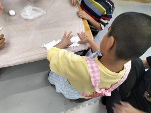 展示会に向けて沖縄の食べ物やシーサーなどを作る児童もいました!