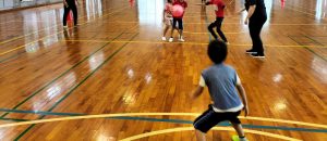 体育館の中で広々走り回り、キャーキャーと悲鳴を上げながら鬼から逃げていました。