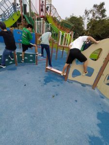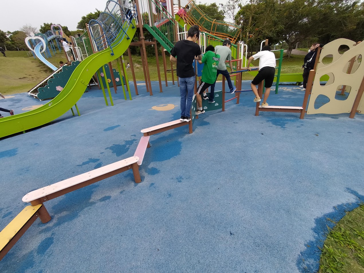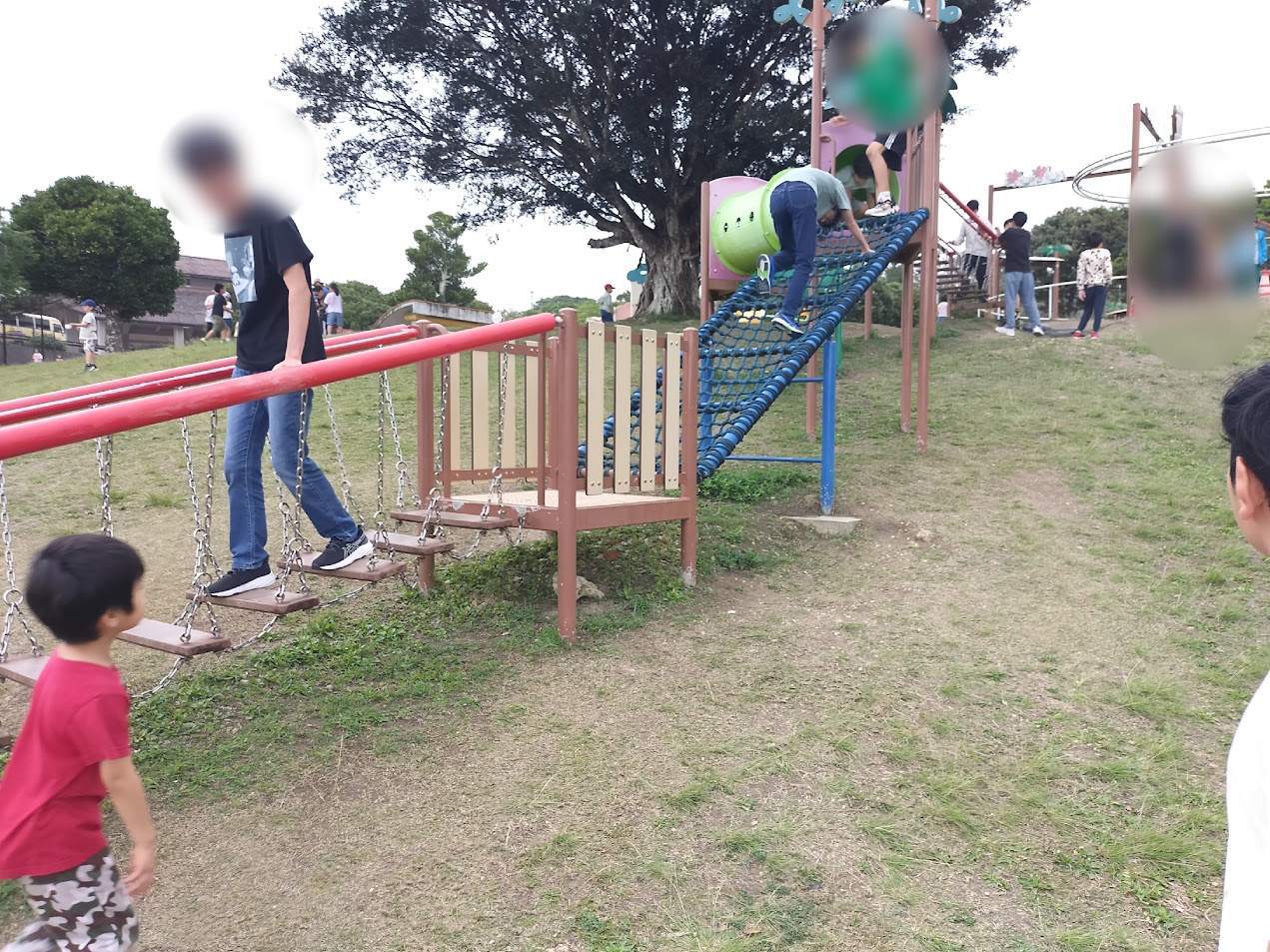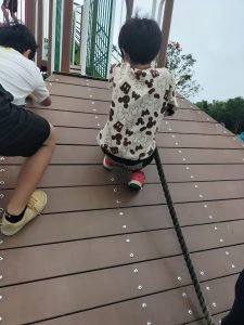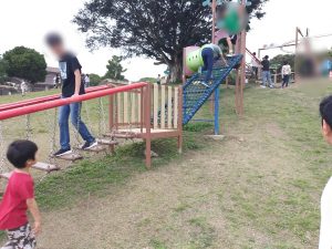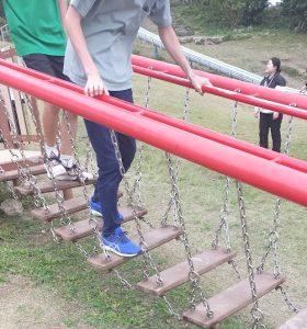 こちらはバランスゲーム!遊具から落ちないようにみんな必死になって