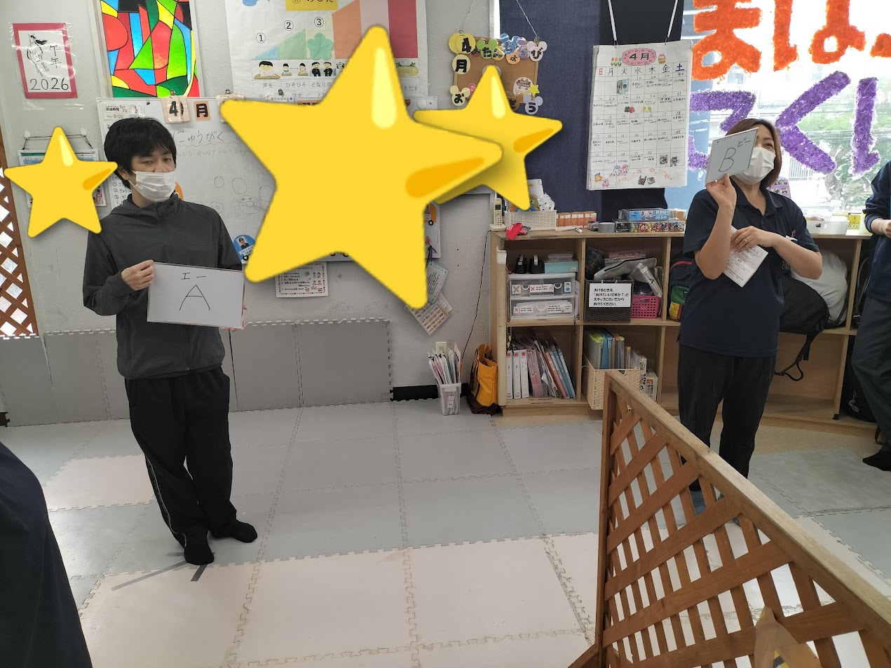 他にも、お友だちの誕生日やスタッフの好きな食べ物などの問題を出し